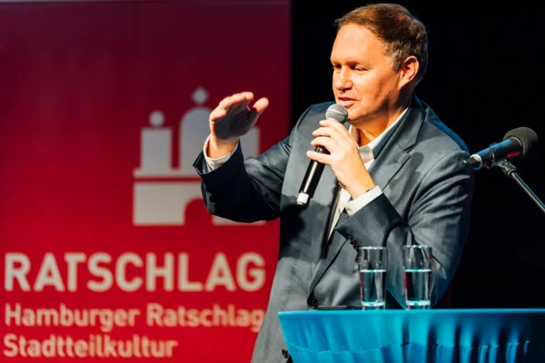 Dr. Carsten Brosda, Senator für Kultur und Medien, eröffnete den Ratschlag 2025 mit einem Grußwort, in dem er sich inhaltlich mit dem Titel des Ratschlags auseinandersetzte. Ausschnitte seiner Rede haben wir für die Dokumentation transkribiert.
