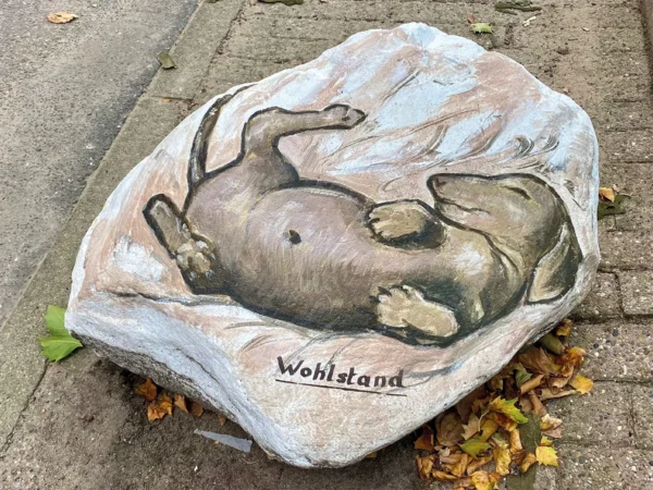 Mit dem Künstler Uwe J. Fehrmann verwandelten wir zehn Findlinge hinter dem EKZ Jenfeld in „schlafende Wachhunde“ – eine Metapher für die unausgesprochenen sozialen Wünsche Jenfelds. Jeder Hund trägt einen Namen mit einem Wunsch der Nachbarschaft (z.B. „Kinderrechte!“). Dieses zehnteilige Kunstwerk regt zum Nachdenken an. Warum ich das wichtig finde? Kunst macht Unsichtbares sichtbar und fordert so politische Verantwortung ein.