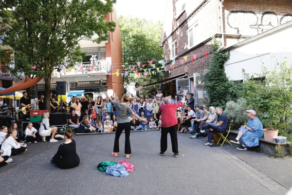 Hamburger Kultursommer 2021: Mehr als zwei Monate veranstalteten über 100 Kulturveranstalter*innen unter dem Motto „Play out loud“ ein vielfältiges Programm in der ganzen Stadt. Obwohl das Format nicht fortgesetzt wurde, beschlossen die Beteiligten der Minibar Moralia, des Ateliers Freistil und der barner 16 ihr Festival weiter in Eigeninitiative auf die Beine zu stellen. Seitdem verwandelt sich der Wilhelmsburger Gewerbehof „Am Veringhof“ jeweils am ersten Septemberwochenende in ein Wimmelbild ausgelassener Freude: die Minibar Moralia Festspiele.