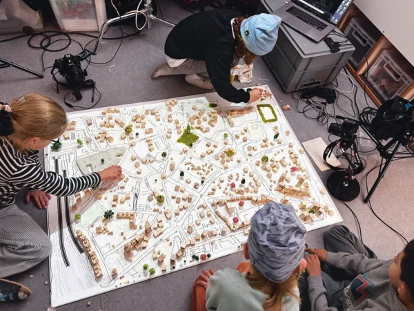 Im Mittelpunkt steht die Frage: Wie erleben Kinder ihre Umgebung und wie wünschen sie sich den öffentlichen Raum der Zukunft? Die Teilnehmenden erkundeten Plätze und Straßen, fotografierten, sammelten Geräusche und tauschten sich über ihre Beobachtungen aus. Sie untersuchten Spielplätze, bewerteten Aufenthaltsqualitäten und machten Vorschläge für neue Nutzungen, etwa wenn Parkbuchten künftig nicht mehr von Autos belegt sind.